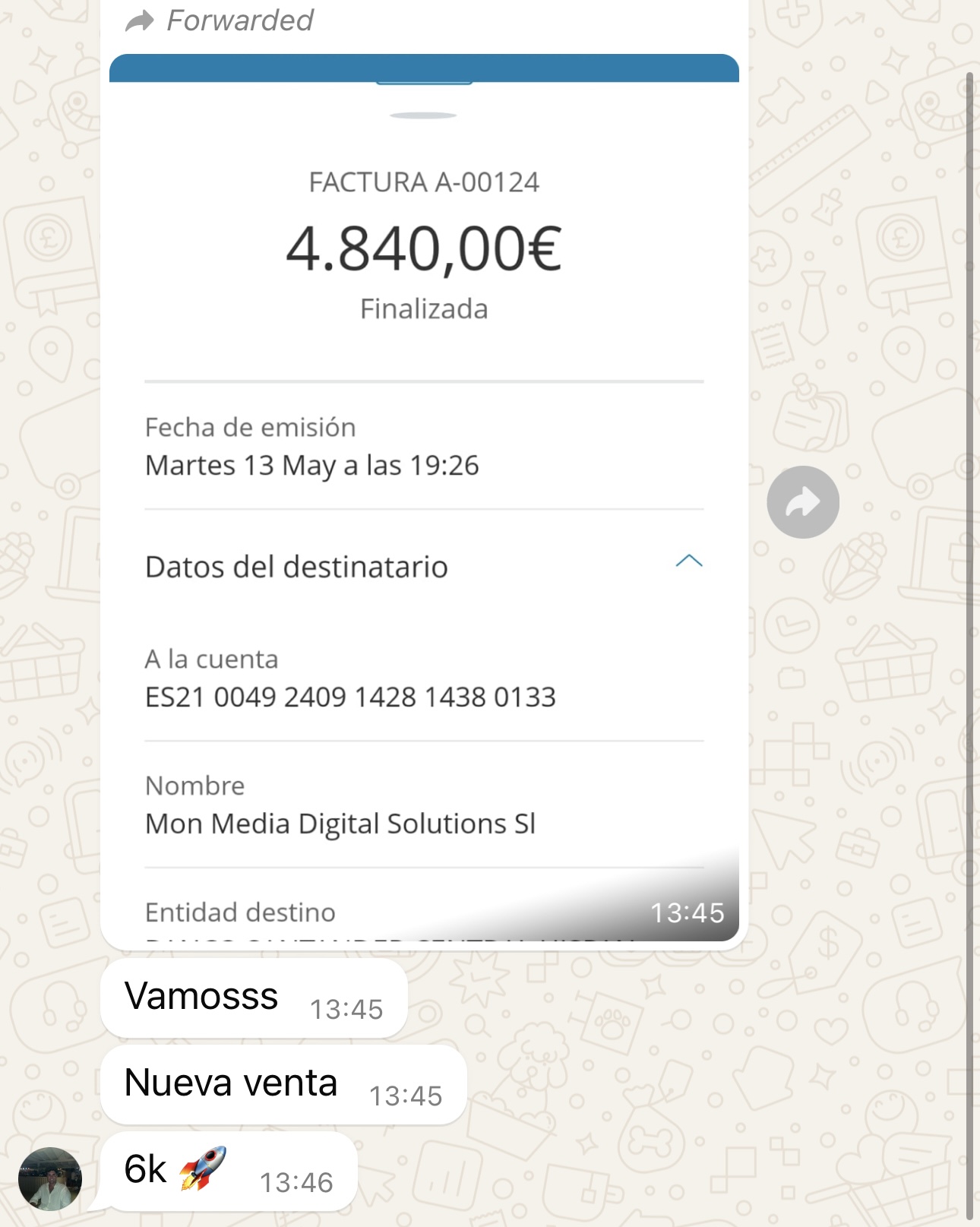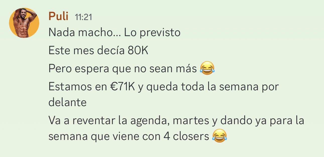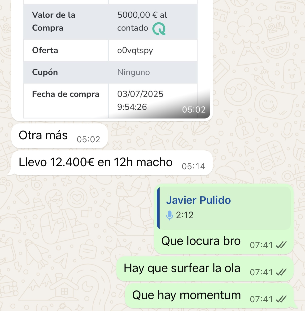 "No tengo marca personal gigante, solo 700 seguidores reales. Pero facturé 18.000€ mi primer mes. Al final no es cuestión de audiencia, sino de procesos y pricing correcto." - Javier Vinué