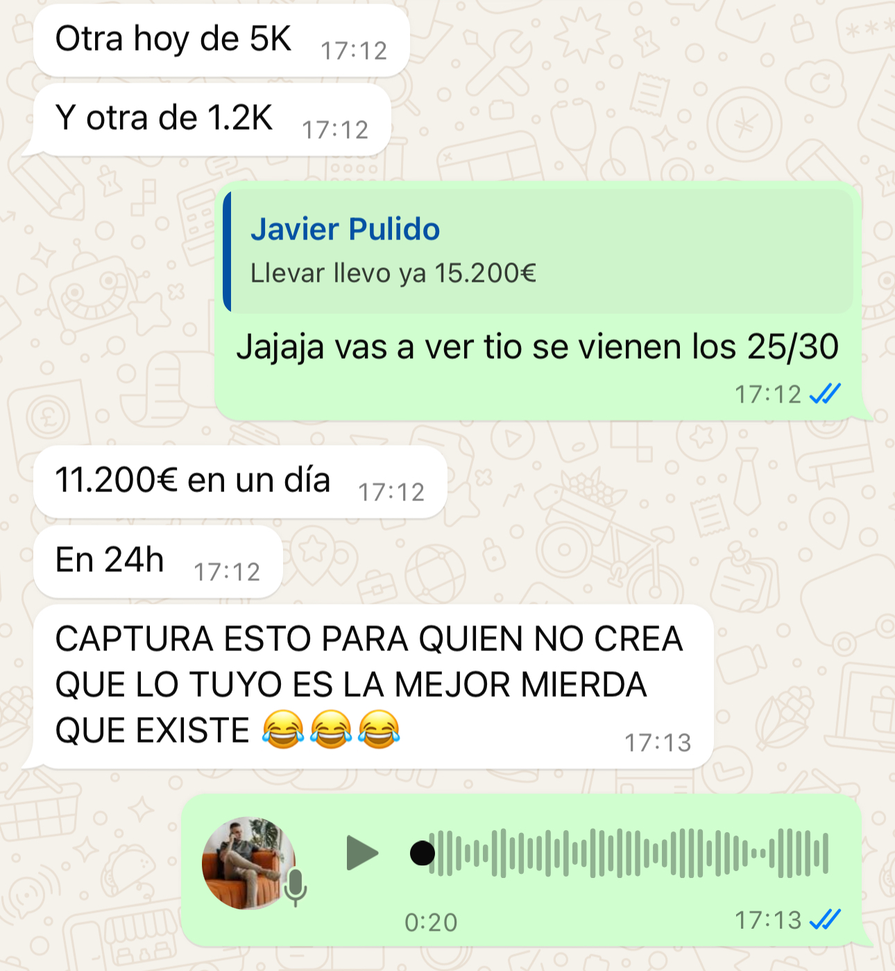 "Si alguien me hubiera dicho que en un nicho como el fitness, con tickets de 1.200€, llegaríamos a 40.000€ al mes en 90 días, jamás lo habría creído." – Javier Pulido
