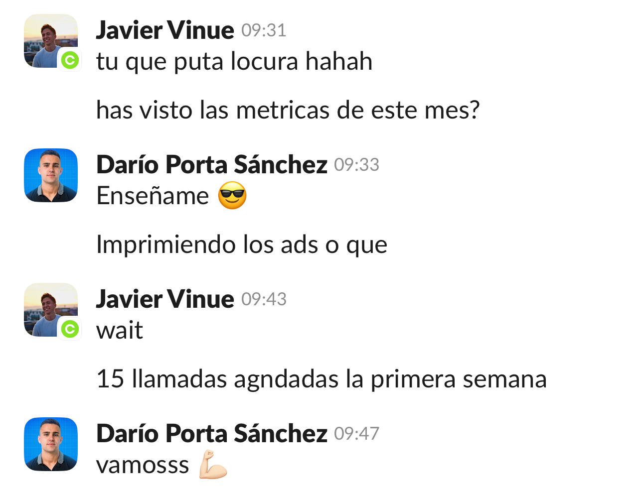 "Teníamos un ROAS muy inestable que dependía de eventos. Ahora tenemos un sistema predecible y cómodo. No es solo el tiempo ganado, sino lo que nos aporta económicamente." - Toni Monton y David Montejano